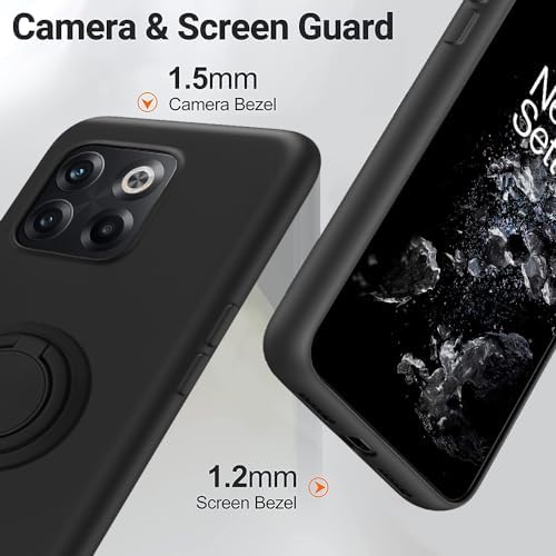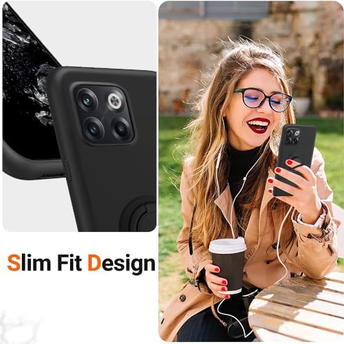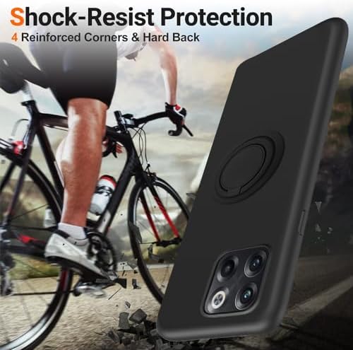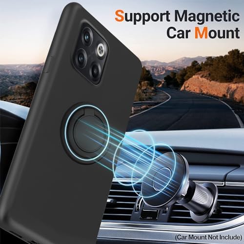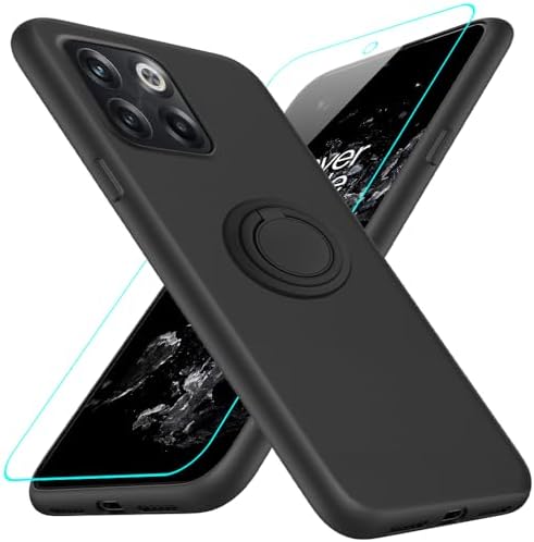 for OnePlus 10T 5G Case (2022) Phone Case with Glass Screen Protector, 360° Rotatable Ring Holder Magnetic Kickstand/Stand Silicone TPU Shockproof Protective Cover Case for Oneplus 10T - Black