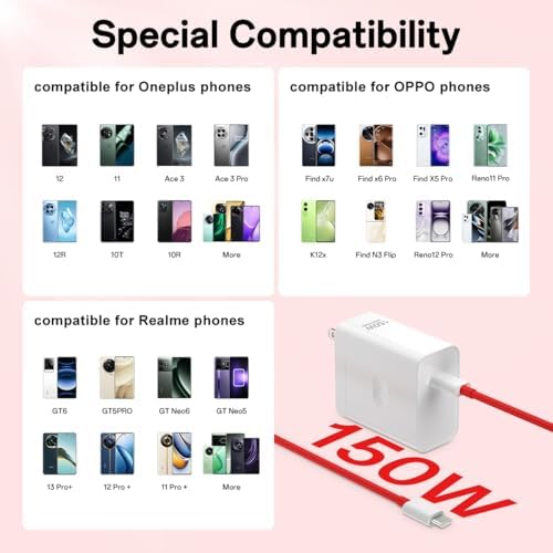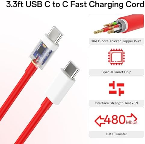 150W 100W 80W Super Fast Wall Charger Block Compatible for Oneplus One Plus 13 12 13R 12R 11 10T 10R Nord CE4 3 4 Pad Open PD 65W MacBook Laptop 3.3ft USB C to C Cable