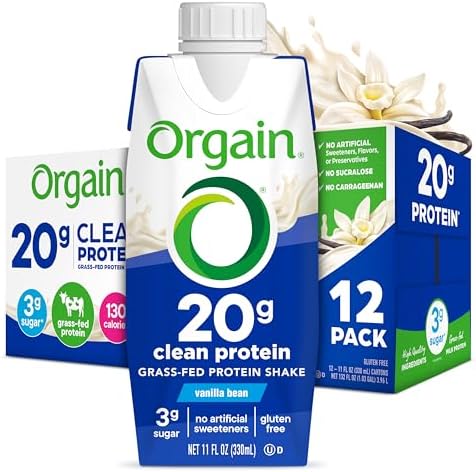 Orgain Clean Protein Shake, Grass Fed Dairy, Vanilla Bean - 20g Whey High Protein, Kosher, Ready to Drink, Low Net Carbs, Gluten Free, No Soy Ingredients, 11 Fl Oz (Pack of 12)