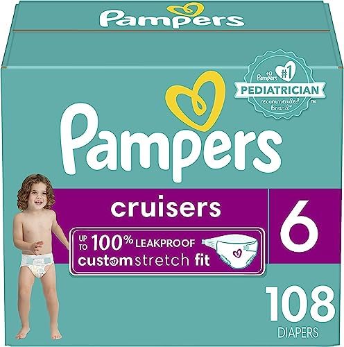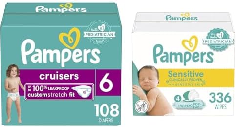 Diapers Size 6, 108 Count and Baby Wipes - Pampers Cruisers Disposable Baby Diapers and Water Baby Wipes Sensitive Pop-Top Packs, 336 Count (Packaging May Vary)