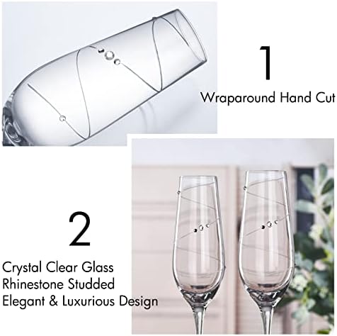 Sponsored Ad - Champagne Flutes Glasses Set of 2, Bride and Groom Champagne Flutes, Wedding Toasting Flutes Wraparound Hand-Cut Design Embellished with Crystals, Anniversary Party Birthday Banquets Pr