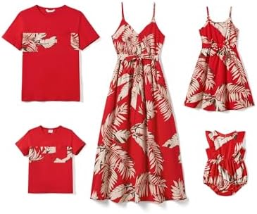PATPAT Family Matching Outfits Mommy and Me Dresses Hawaiian Tropical Vacation Beach Spaghetti Strap Dress and Shirt