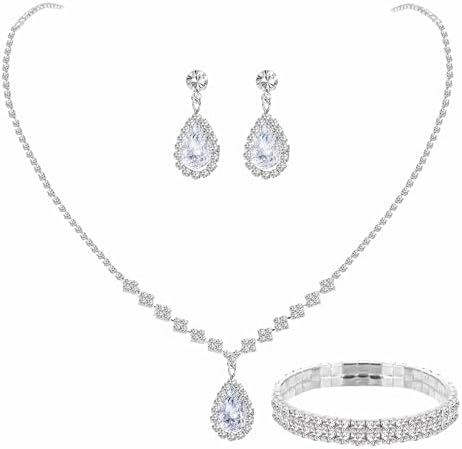 Sponsored Ad - Silver/Gold Rhinestone Crystal Wedding Bridal Bridesmaids Earrings Bracelet Set for Women Brides Bridesmaids Crystal Rhinestone Bracelet Earrings Set for Wedding Bridal Prom Pageant