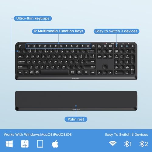 Bluetooth Keyboard and Mouse Combo - Bluetooth 2.4Ghz Wireless Keyboard and Mouse,Ergonomic Design with Palm Rest,3-Device Connectivity, 5 DPI Mouse, Long Battery for Office & Home -Black
