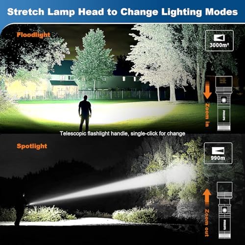 Flashlights High Lumens Rechargeable with Ignition Lens,2000lm Tactical Flashlights with Camping Lamp,2 Colors Zoomable 5Modes Reverse Charging LED Bright Flashlight for Home Outdoor Gift