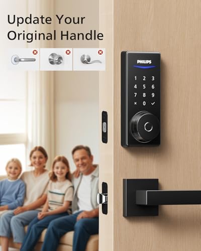Smart Lock with Handles, Keyless Entry Door Lock Set, Smart Door Lock with 2 Level Handles, Digital Keypad Deadbolt for Front Door, App Fingerprint PIN Code Unlocking, Auto Locking