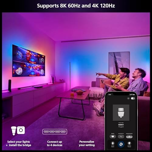 Play HDMI Sync Box 8K, Syncs up to 10 Hue Lights with Your Video Games, Movies, and Music, Requires Hue Bridge,Supports Dolby Vision HDR10+, Control with Hue App