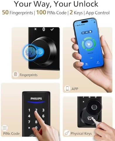 Fingerprint Smart Lock, Keyless Entry Door Lock, Smart Door Locks for Front Door, Keypad Deadbolt, APP Control, 9-Month Long Battery