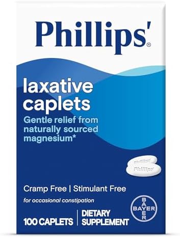Laxative Caplets, With Naturally Sourced Magnesium Supplement for Gentle Relief of Occasional Constipation, Cramp and Stimulant Free Laxatives, 100 Caplets