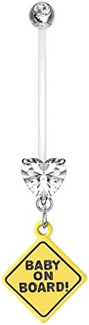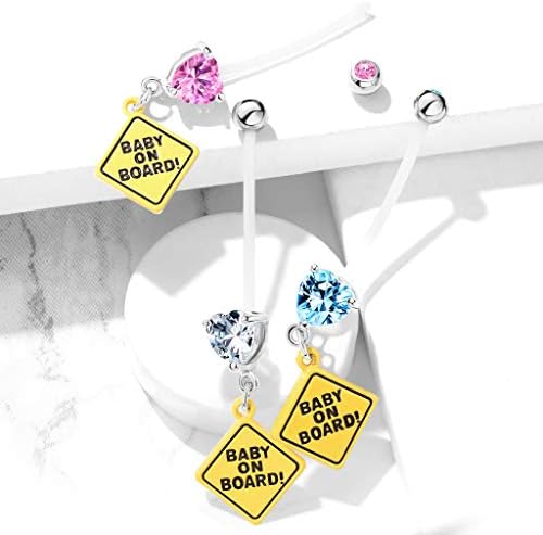 Pierced Owl - Double Jeweled Heart Baby on Board Dangle Pregnancy Maternity Belly Button Ring Retainer