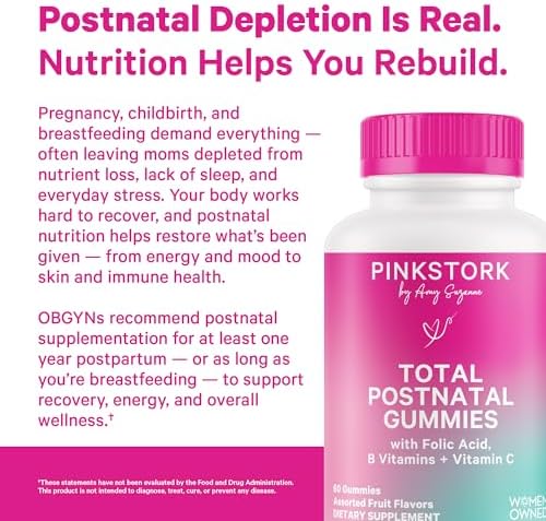 Sponsored Ad - Pink Stork Total Postnatal Vitamin Gummies - Multivitamin for Postpartum Recovery and Lactation Support - Folic Acid, B6, & Vitamin C - Breastfeeding Essentials - 60 Gummy Vitamins