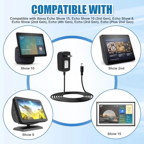 Sponsored Ad - 30W Power Cord Adapter Replacement for Alexa Echo Show 8(1st 2nd 3rd Gen), Echo Show 10(3rd Gen), Echo Show 15, Echo Show 21, Echo(3rd 4th Gen), Echo Show(2nd Gen), Echo Plus(2nd Gen) C