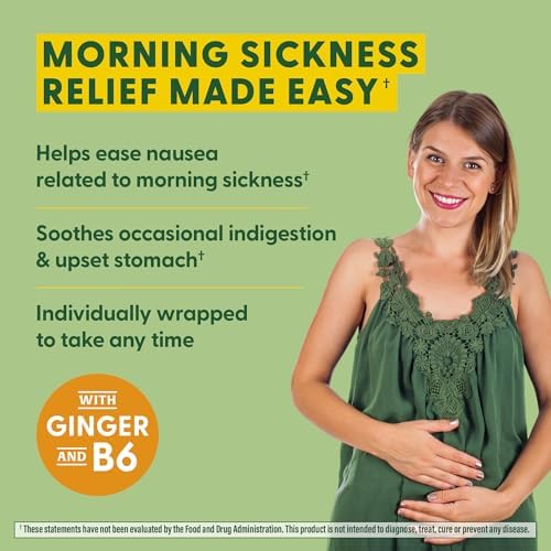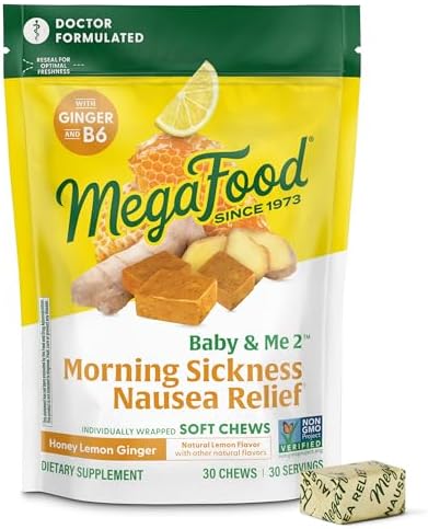 MegaFood Baby & Me Prenatal Morning Sickness Relief, Ginger Chews, with Vitamin B6, Made Without 9 Food Allergens, Honey Lemon Ginger Flavor, 30 Chews