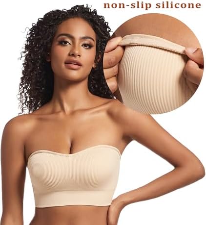 Sponsored Ad - PRETTYWELL Strapless Bra for Women Ribbed Seamless Non-Slip Comfort Padded Wireless Bandeau Bras Wireless Tube Top Bra