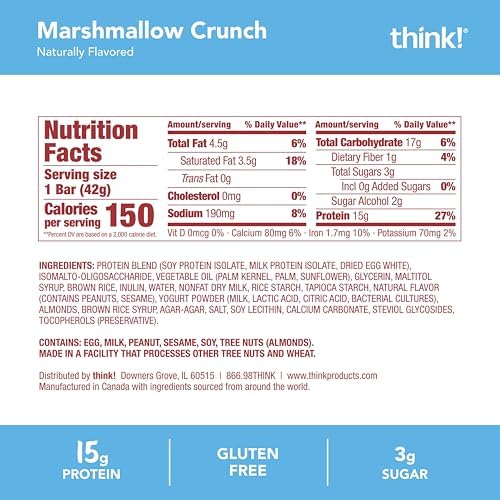 Sponsored Ad - Think! High Protein Crispy Squares Marshmallow Crunch Treat (10 Pack)