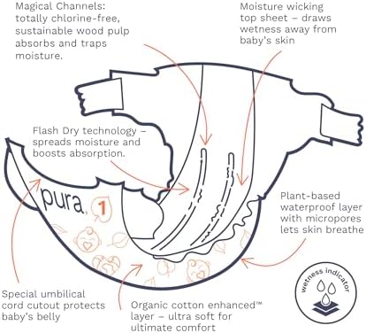 Hypoallergenic Diapers, Size 1 (4-11lbs), Newborn, Totally Chlorine Free, Wetness Indicator, Suitable for Sensitive Skin, Soft Organic Cotton Comfort, Overnight, 3 Packs of 32 (96 Baby Diapers)