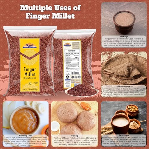 Rani Ragi Finger Millet (Eleusine Coracana) Whole Ancient Grain Seeds 28oz (800g) ~ All Natural | Gluten Friendly | NON-GMO | Kosher | Vegan | Indian Origin