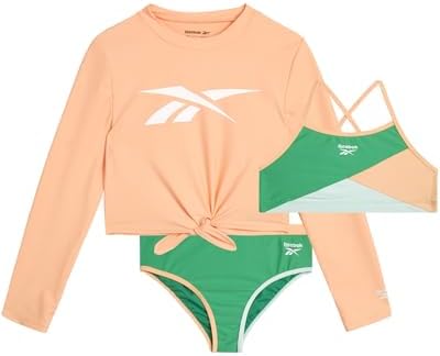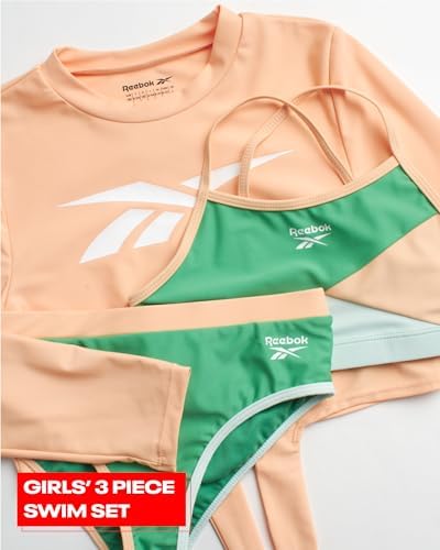 Girls' Rash Guard Set - 3 Piece UPF 50+ Long Sleeve Swim Shirt with Bikini Swimsuit - Swimwear Set for Girls (4-16)