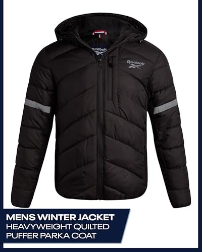 Mens Winter Jacket - Water Resistant Heavy Puffer Coat with Hood - Quilted Insulated Warm Winter Coat for Men