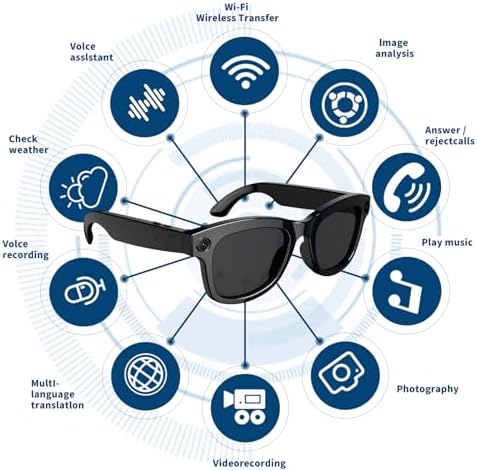 Sponsored Ad - AI Smart Glasses with 8MP Camera, HD 1080P, Bluetooth Music/Calls, Open Ear, EIS, WiFi, AI Voice Assistant, Translation, Object Recognition for Travel, Work, Outdoor, Wide Face (Gray Le