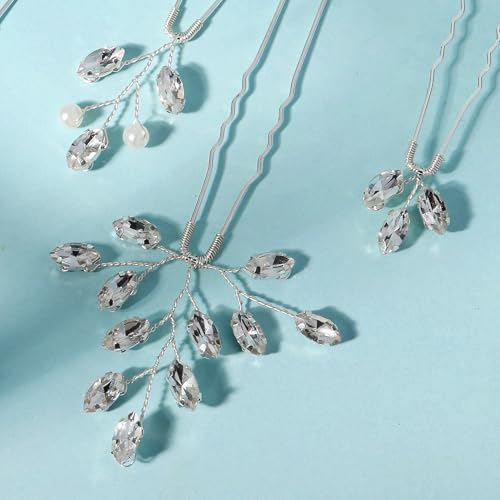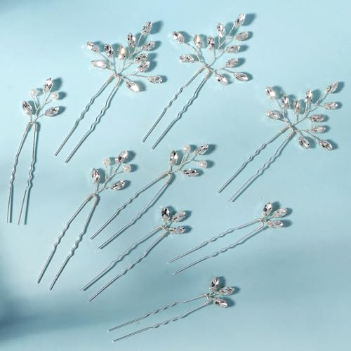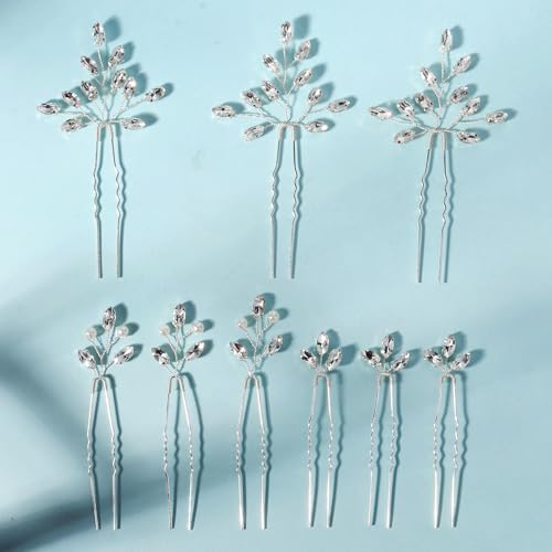 9 Pieces Bridal Hair Pins Rhinestone HairPiece for Women Crystal Silver Hair Accessories for Bride Bridesmaids