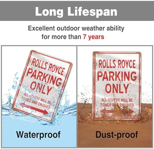 CAIRUO Rolls Royce Parking ONLY Vintage Look 8x12 Inches Metal Tin Sign Retro - Wall Decor Plaque Poster