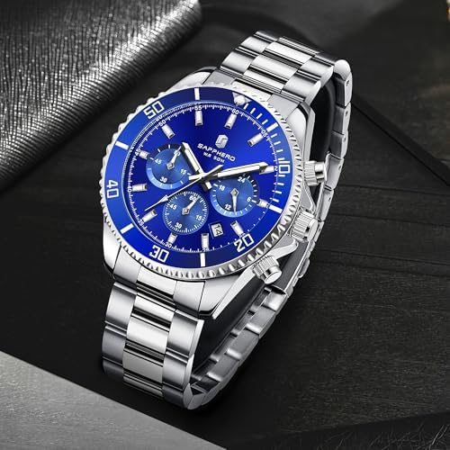 Sponsored Ad - Mens Watches Analog Quartz Chronograph Stainless Steel Watches for Men 50M Waterproof Men's Wrist Watches with Calendar Luxury Business Work Casual Watch Elegant Gifts for Men