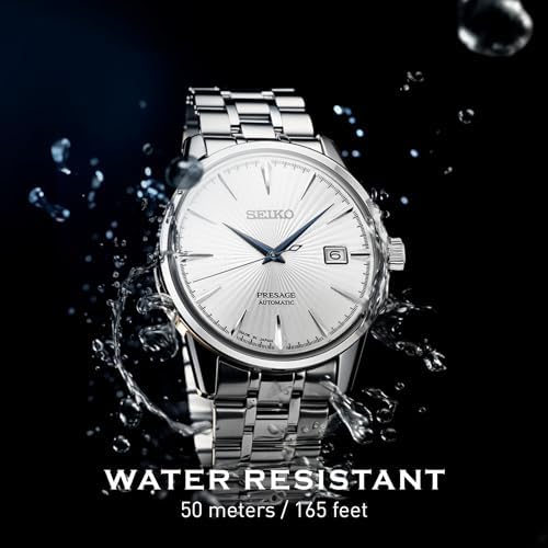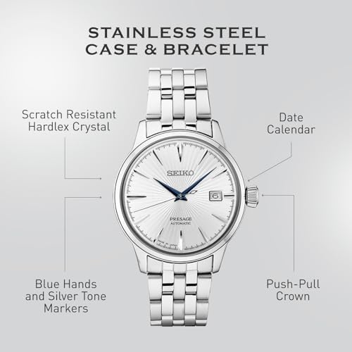 SRPB77 Automatic Watch for Men - Presage Cocktail Time - Patterned Silver Dial with Gloss Finish, Date Calendar, 50m Water-Resistant