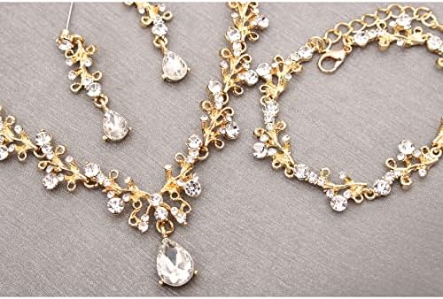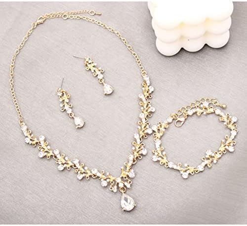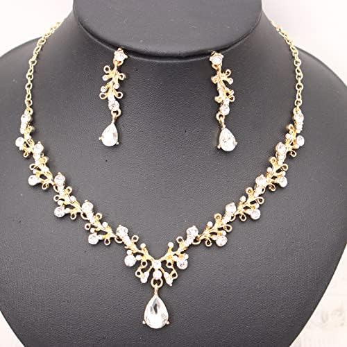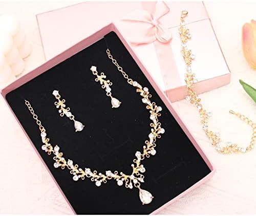 Sponsored Ad - 3Pcs Austrian Crystal Jewelry Set for Women, Necklace Dangle Earrings Link Bracelet Jewelry Set with Gold/Platinum/Gun Plated, Wedding Party Jewelry for Bridal Bridesmaid