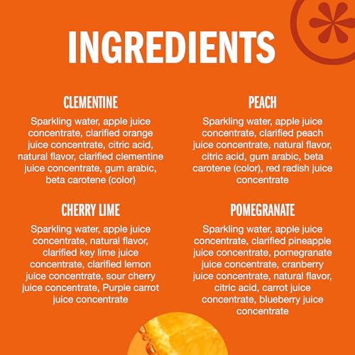 IZZE Sparkling Juice Beverage Blend, Sunset Variety Pack, Clementine, Peach, Cherry Lime, Pomegranate, No Sugar Added, 8.4 Fl Oz (Pack of 24)