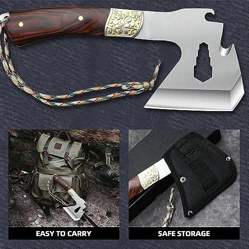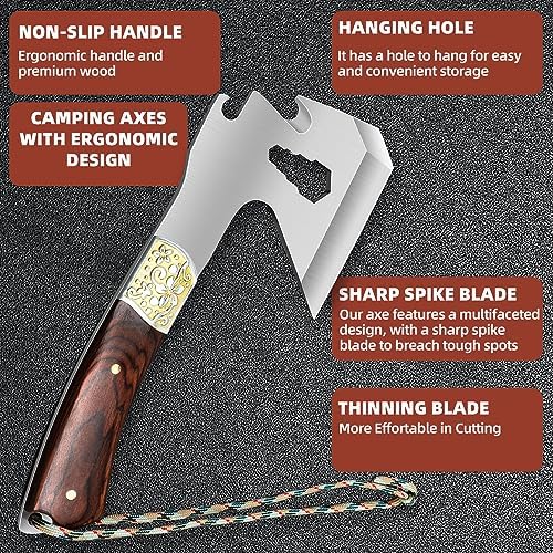 Sponsored Ad - Camping Hatchet Camping Axe Forged High Carbon Steel for Meat Cleaver Axe Outdoor Splitting Wood Great for Axe Throwing, Camping, Survival, Outdoors and Chopping (734F)