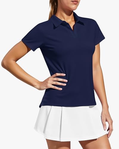 Women's V Neck Golf Polo Shirts UPF 50+ Short Sleeve Tennis Shirt Collared Workout Tops Quick Dry
