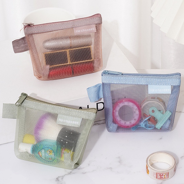 Stereoscopic Triangle Mesh Coin Pouch Key Bag Earphone Bag Coin Pouch Transparent Storage Bag
