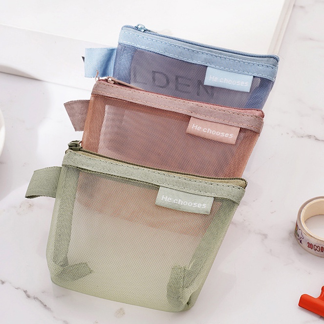 True to the description: dung Color: pink color: pink Material: mesh Nice bag, to fit lipsticks like romand, looks small but very spacious, international goods but super fast delivery