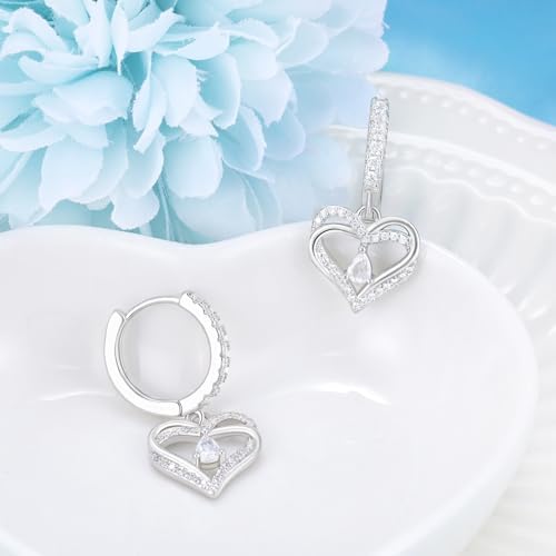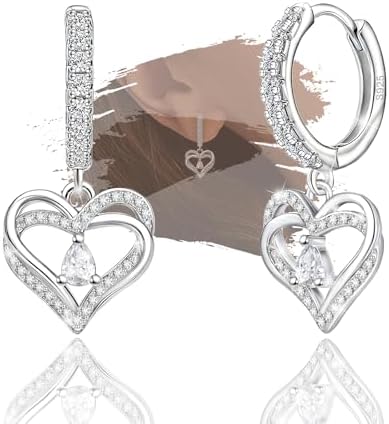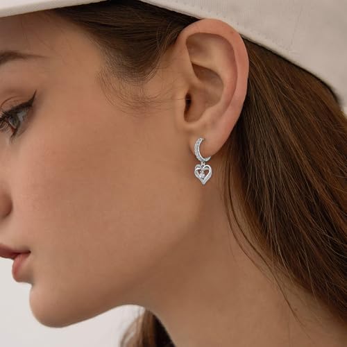Sponsored Ad - Sterling Silver Heart Earrings for Women - Cubic Zirconia Double Heart Shaped Hoop Earrings Hypoallergenic for Sensitive Ears Classic Love Loop Jewelry Gifts for Wife Mom