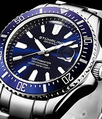 Men's Watches Pro Dive Watch Sports Watch with 42 MM Case Blue Dial Stainless Steel Silver Bracelet Diving Watch for Men