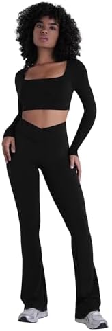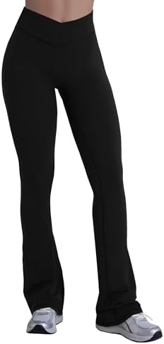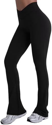 Sponsored Ad - Sunzel No Front Seam Crossover Flare Leggings for Women Hidden Butt Lifting Scrunch Tummy Control Mini Flared Yoga Pants
