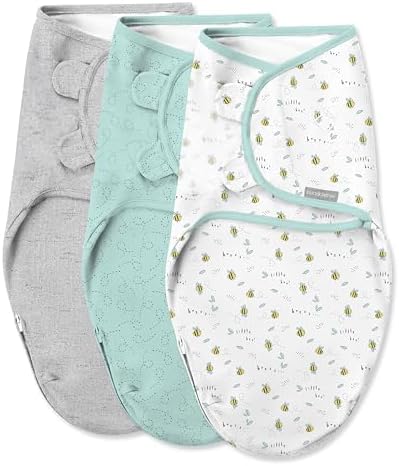 SwaddleMe by Ingenuity Easy Change Baby Swaddle in Size Small/Medium, 0-3 Months, 7-14 Pounds, 3-Pack with Easy Change Zipper - Little Bees