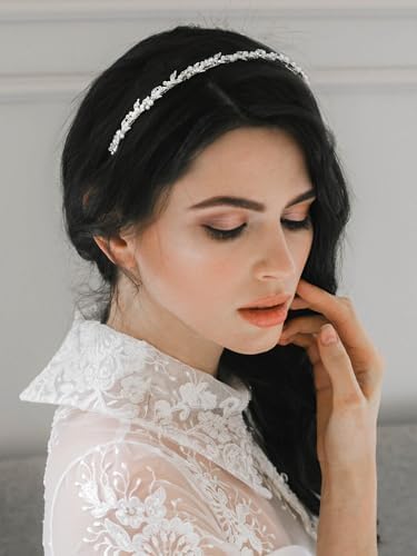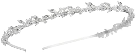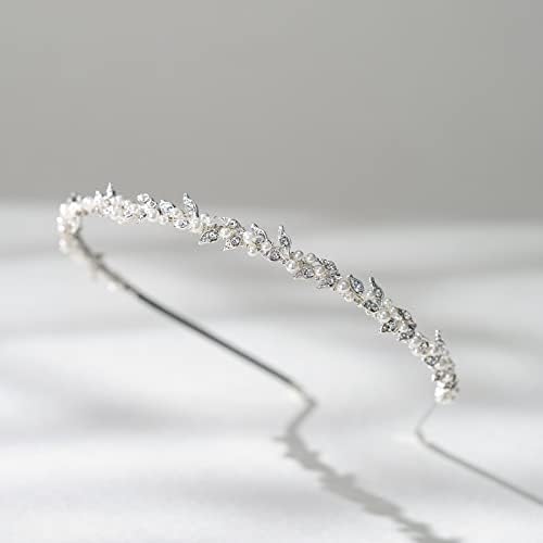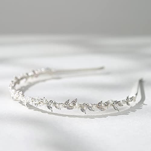 SWEETV Rhinestone Bridal Headband Silver Crystal Tiara for Women Pearl Wedding Headpieces for Bride Hair Accessories for Prom Birthday Party
