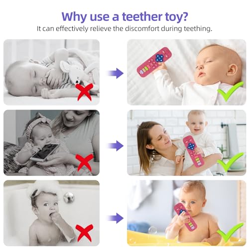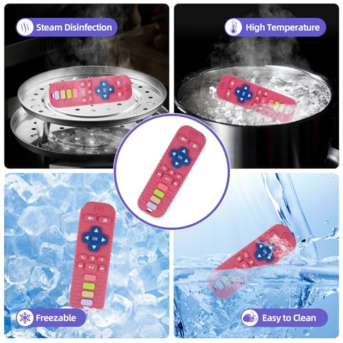 Baby Teether Toy for Babies 3-24 Months TV Remote Control Shape Chew Toy Teething Relief Baby Toys for Infants (Rose red)