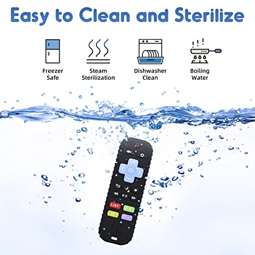 Teething Relief Teethers Toys for Babies 3-6-12 Months Gifts, Food Grade Silicone Sensory Baby Remote Control Teether Bath Toy for Newborn Infant Boy Girl Autism Birthday Christmas Gift, Black