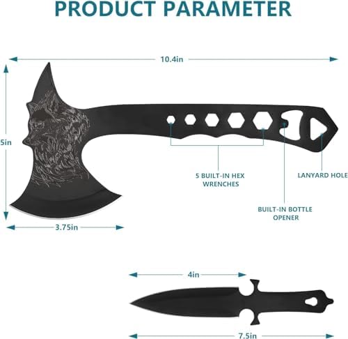 Throwing Axe and Tomahawk 3 Pack Protective Nylon Sheath with Built-in Corkscrew,10.4" Full Tang Stainless Steel Throwing Tomahawk