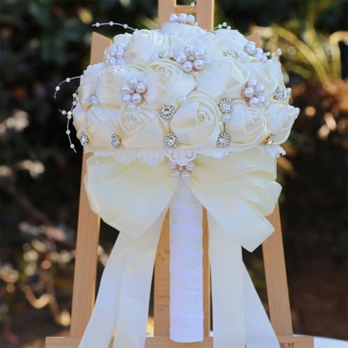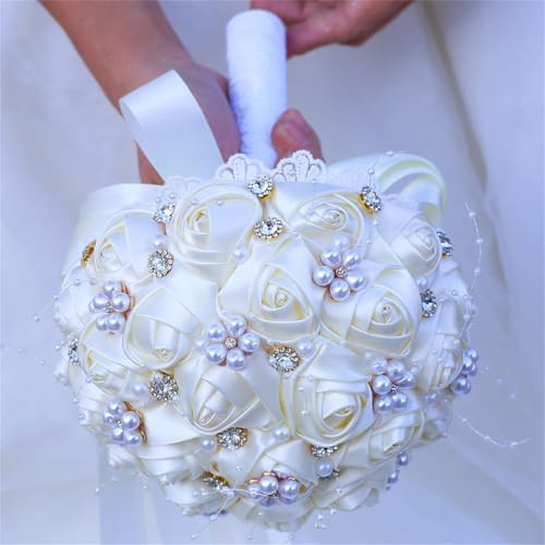 Sponsored Ad - Handmade Rhinestone Bridal Bouquet Crystal Wedding Round Tossing Bouquet Artificial Flower Bunch for Bride Bridesmaid