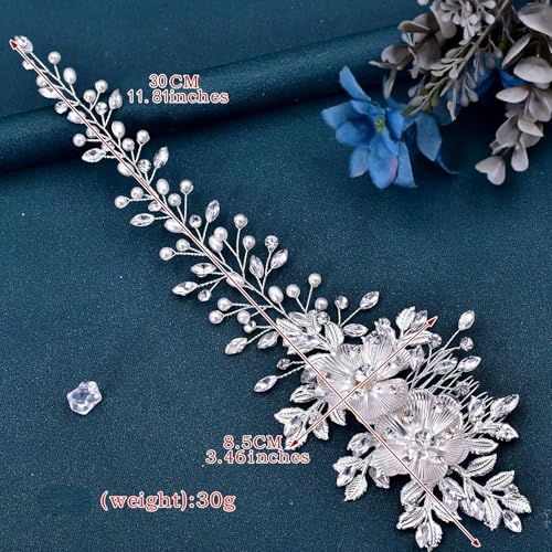 ULAPAN Bridal Hair Combs Crystal Wedding Headbands Head Pieces Rhinestones Hair Accessories for Brides Bridesmaid Womens (silver comb)