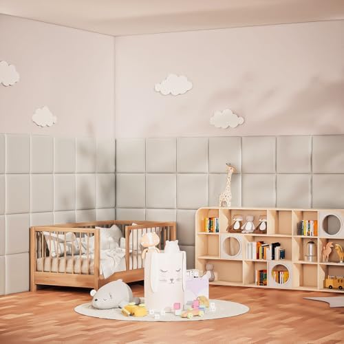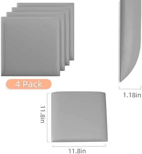 Sponsored Ad - 3D Anti-Collision Wall Padding for Kids, Grey Peel and Stick headboard Panels, Self-Adhesive Headboard Panels for Wall, Bedroom/Living Room Upholstered Wall Panel(4 Pack -11.8" x 11.8")