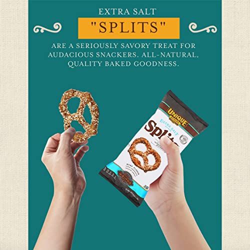 Unique Snacks Extra Salt Splits Pretzels, Original Split-Open Pretzels, Delicious Homestyle Baked Snack Bag, OU Kosher, and Non-GMO Food, No Artificial Flavor, 11 Oz. Bag, Pack of 3