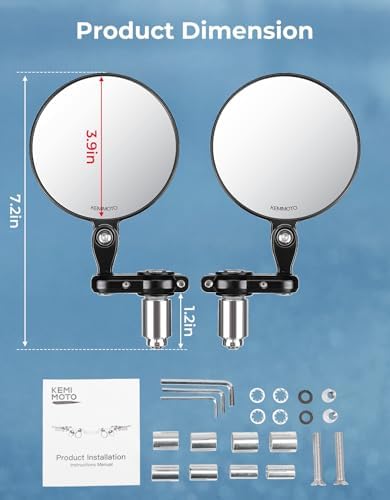 Sponsored Ad - Universal Motorcycle Mirrors, 360° Rotatable Motorcycle Handlebar Bar End Rear View Side Mirrors, Compatible with 7/8 in Handlebar and 0.51-0.83in (13mm-21mm) Handlebar Inner Diameter