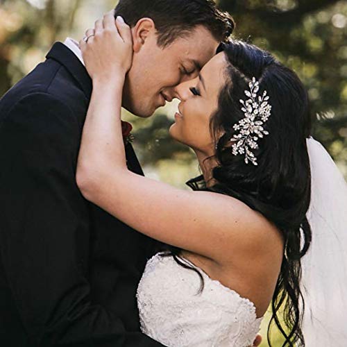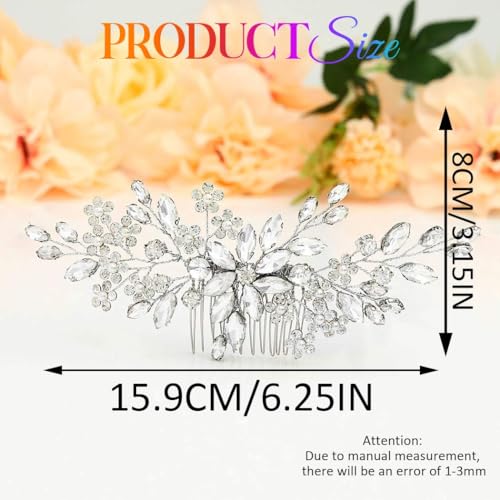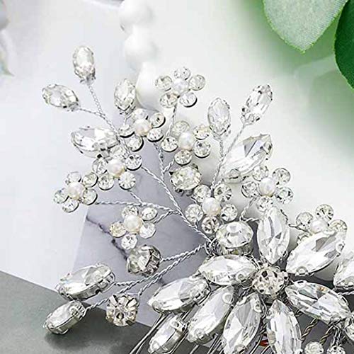 Unsutuo Crystal Bride Wedding Hair Comb Silver Rhinestone Flower Bridal Hair Pieces Pearl Wedding Hair Accessories for Women and Girls(Silver)