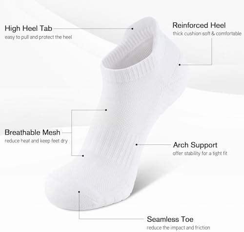 Sponsored Ad - Low Cut Athletic Ankle Socks - Cushioned, Soft & Breathable, Anti-Blister Tab, 6 Pairs Men & Women