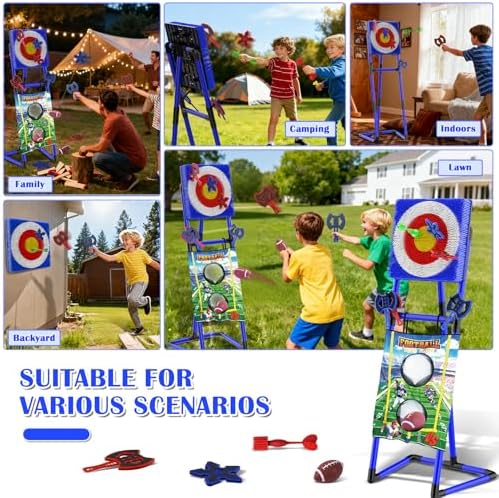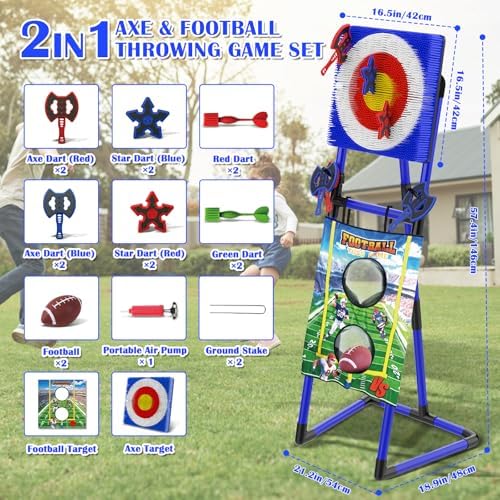 VATOS 2-in-1 Axe & Football Throwing Game Set, Bristle Axe Toss Target with 16 pcs Safe Darts, Portable Outdoor & Indoor Backyard Games for Teens and Adults, Lawn Carnival, Camping Party Toy Gift